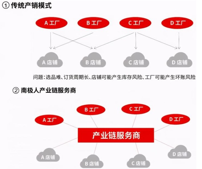 这种模式可以两头收费。供应商需要向南极电商申请授权,产品才能贴上南极人的商标,经销商需要南极电商授权,店铺才能挂南极人的牌子,销售南极人的产品。