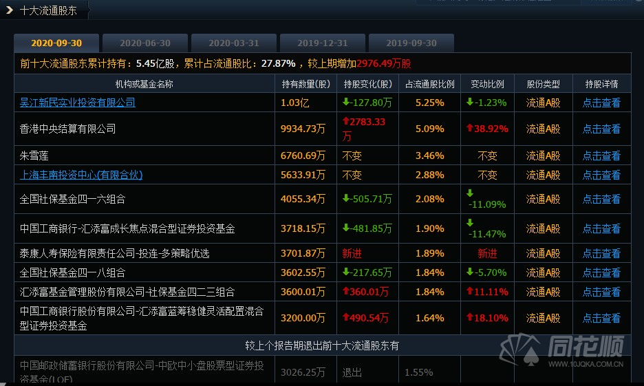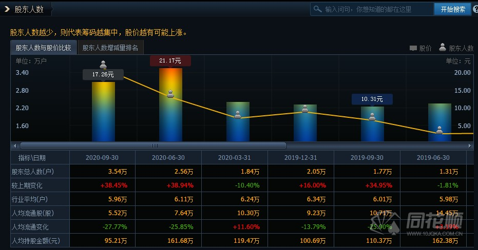 三季度,北向资金大幅增持,股东数量大幅增加,散户接盘。2020年3月31日,南极电商的股东户数为1.84万户,户均持有流通股10.3万股;至2020年6月30日,股东户数升至2.56万户;2020年9月30日,股东户数继续上升,达到3.54万户,较半年前接近翻倍。