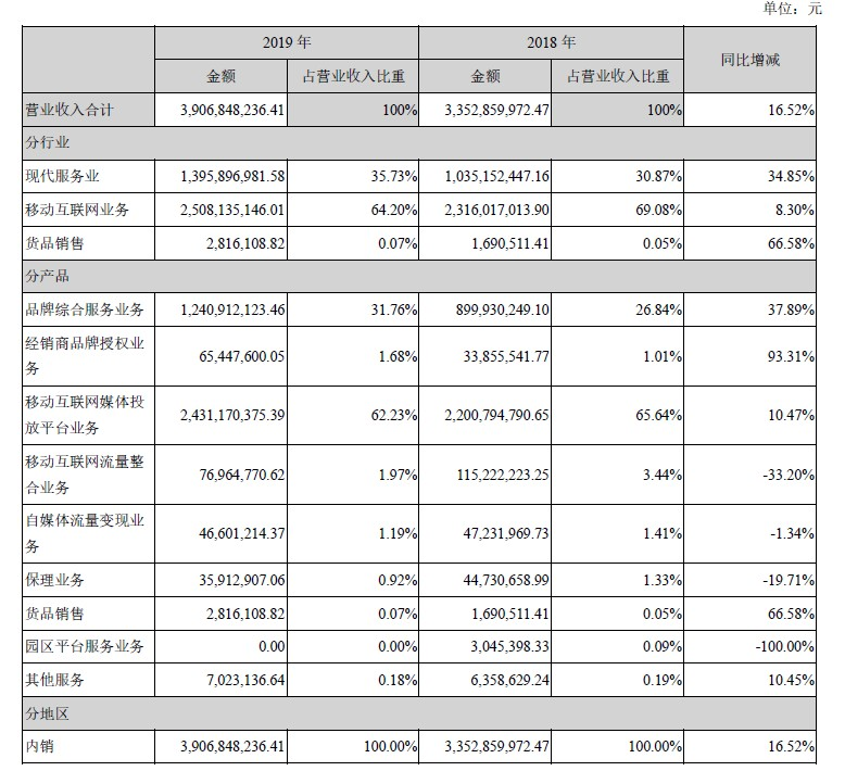 营业收入构成中可以看到,大头为移动互联网业务,增长最快的是经销商品牌授权业务,其增速达到93.31%。