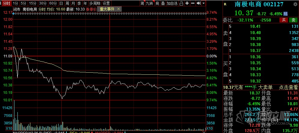 回购公告一出,收效甚微,南极电商股票仍然在下跌。截至1月6日收盘,股价为10.37元,下跌6.49%。